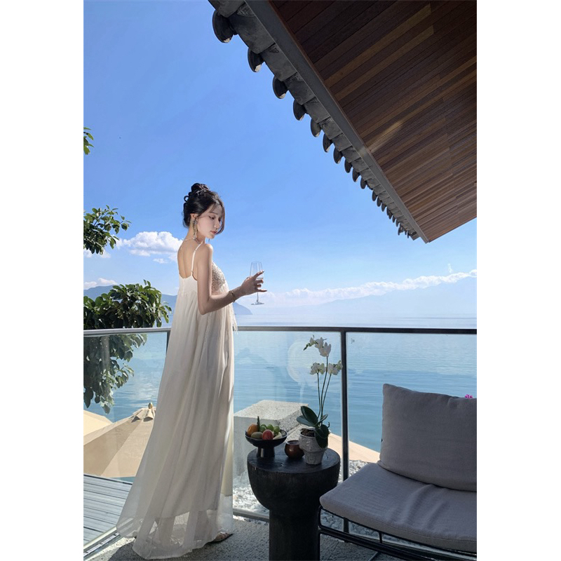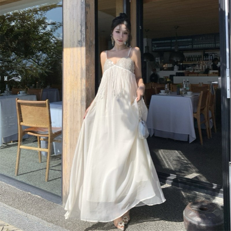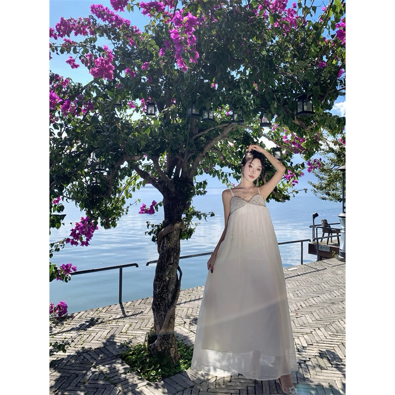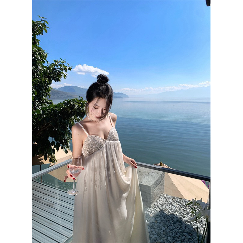 Váy hai dây maxi quyến rũ viền kim tuyến Bling Bling